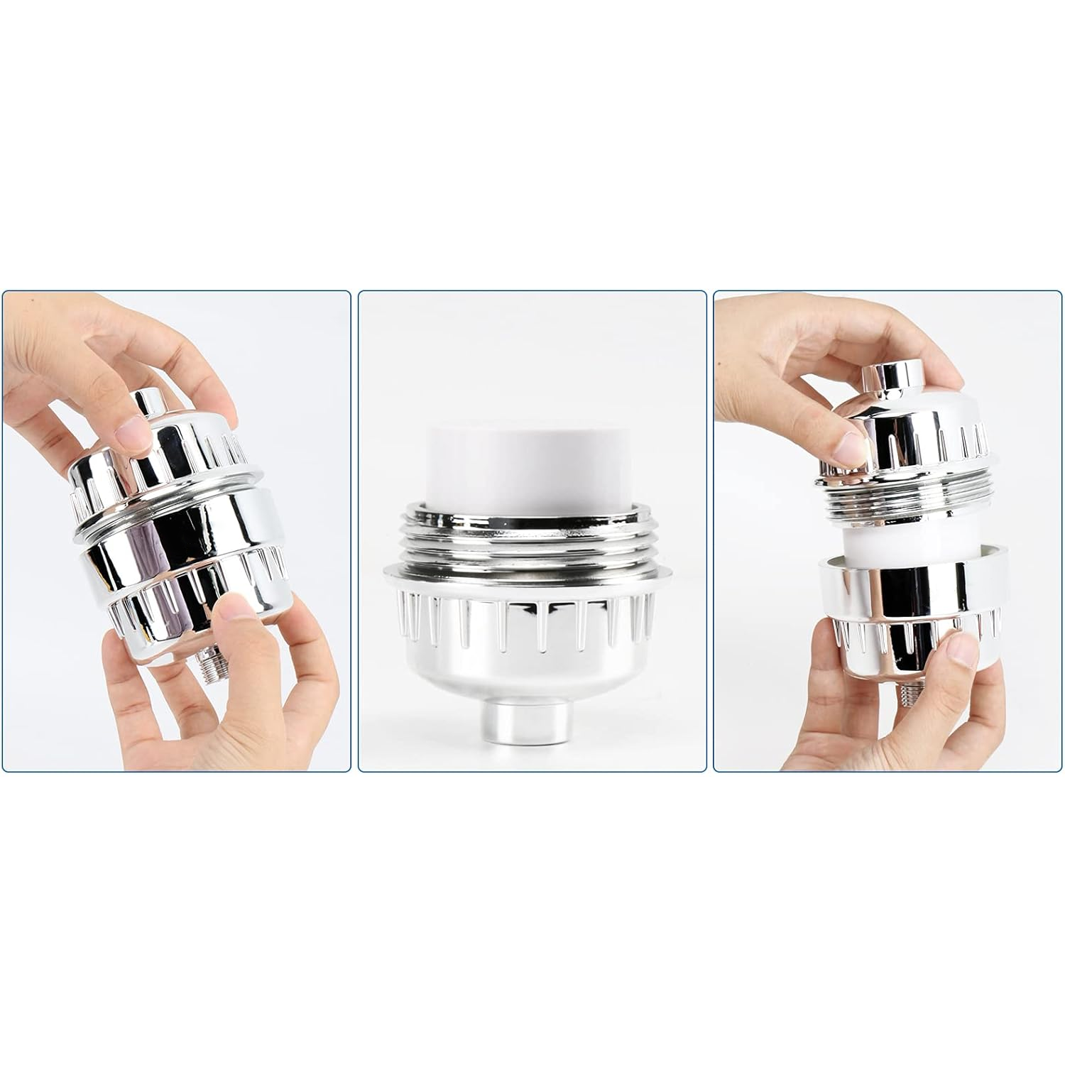 Hold the shower filter firmly and twist the top cap counter-clockwise to open the housing. - Remove& Replace the Cartridge